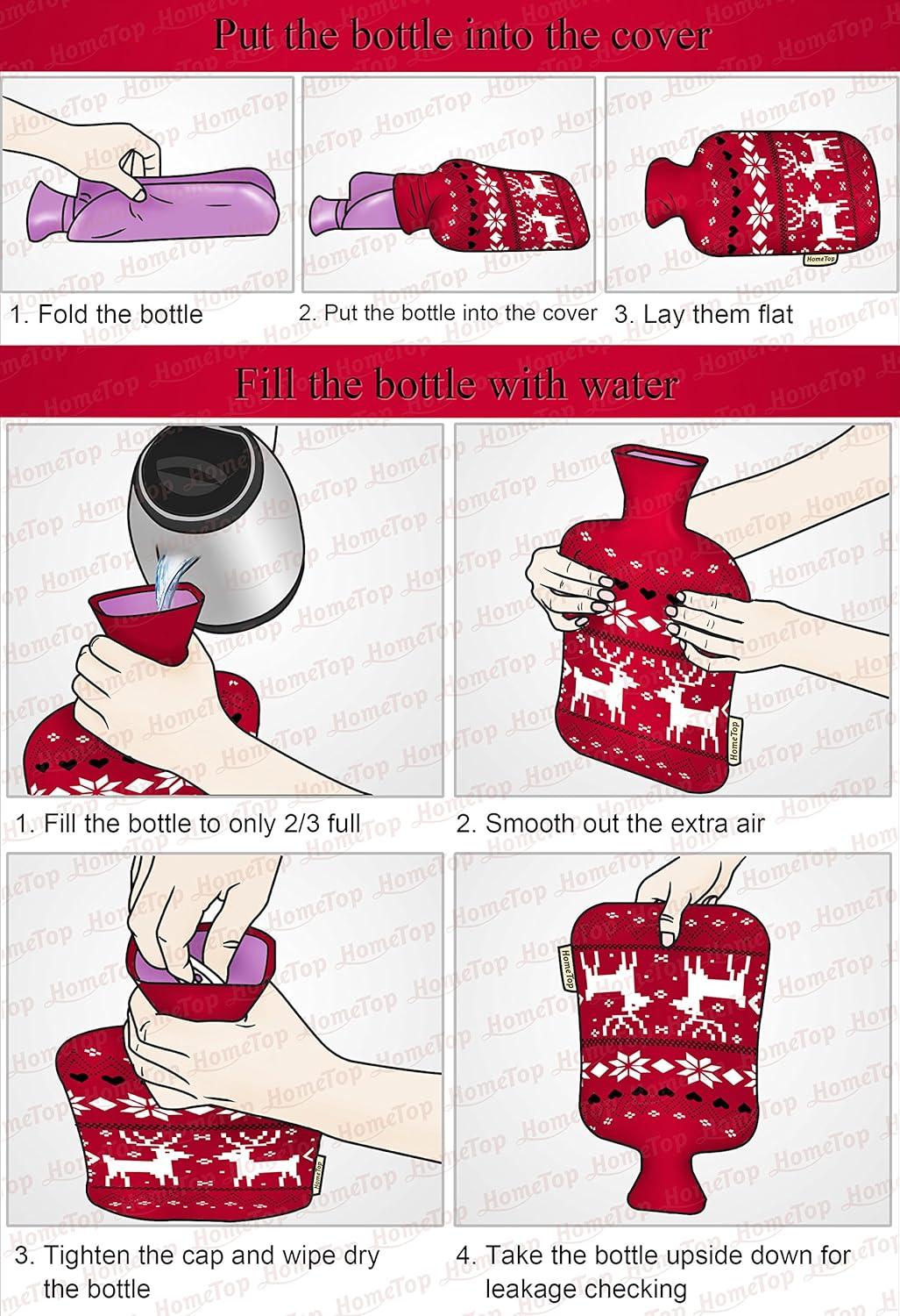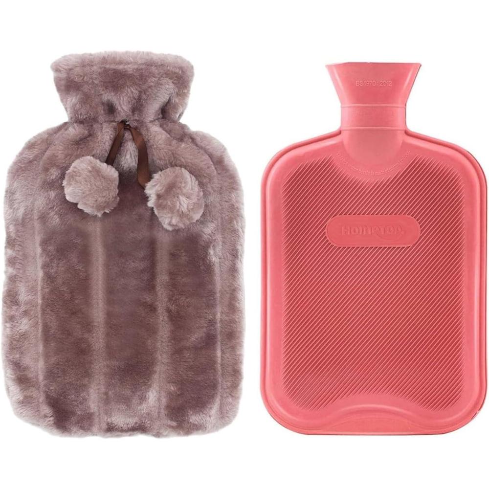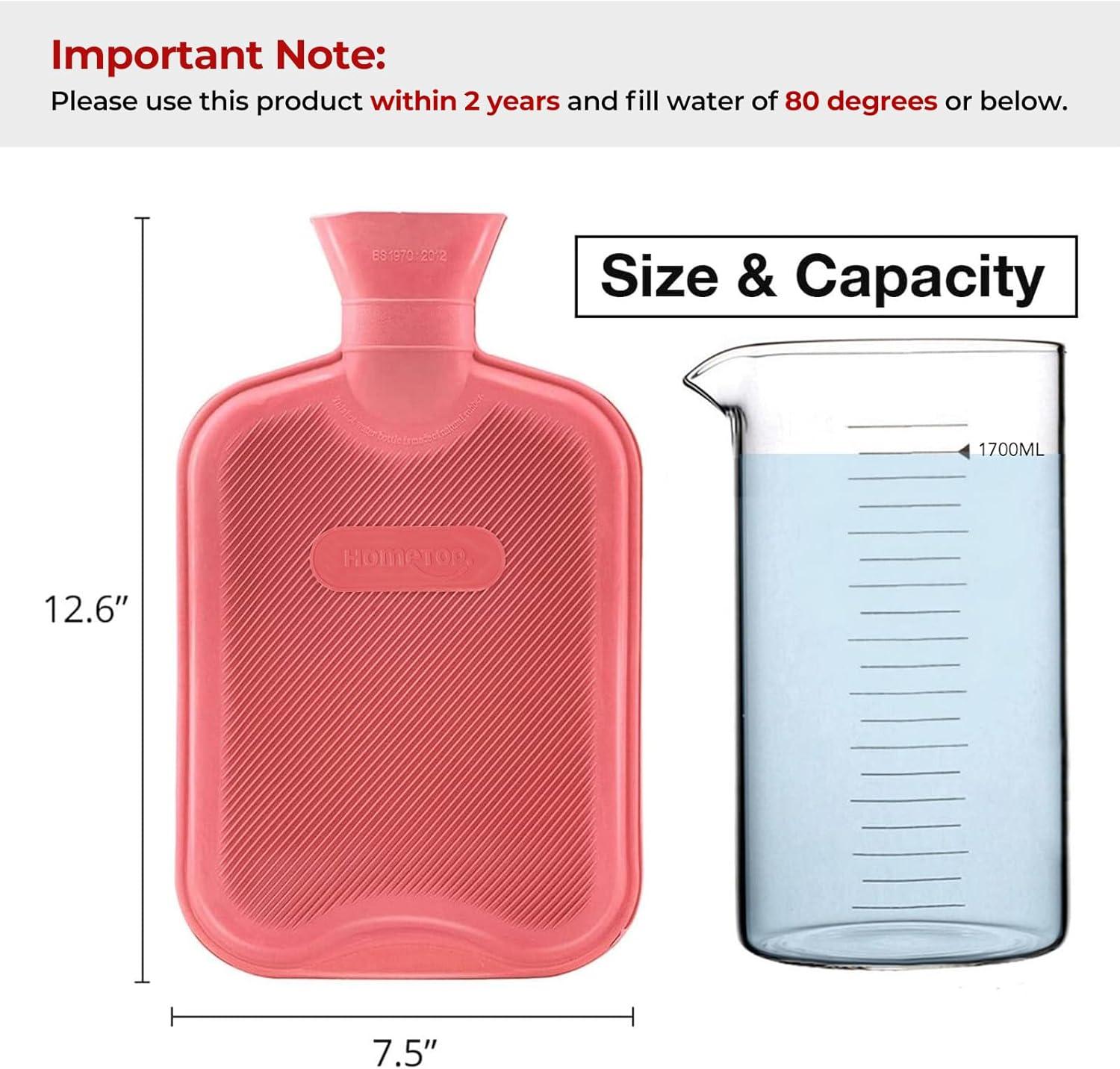 HomeTop Premium Classic Rubber Hot or Cold Water Bottle with Soft Fleece Cover