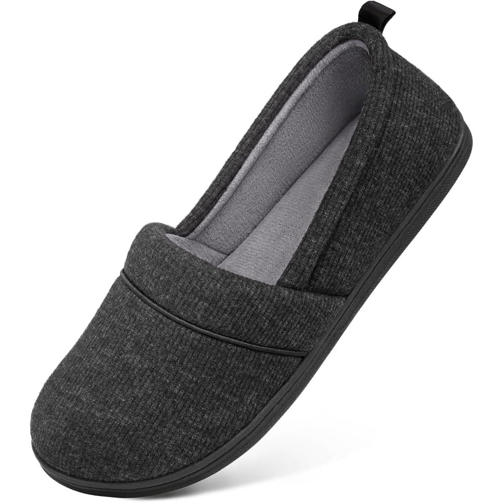 HomeTop Women’s Comfy Loafer Slippers Lightweight Memory Foam Non-slip Indoor House Shoes(Black)